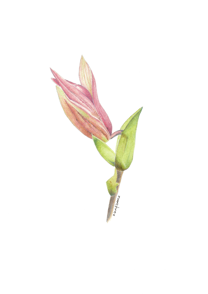 She began learning about drawing and painting from online sources during Covid 19 pandemic and decided to explore more about art since then. As a newbie in botanical art, she works with a broad range of media but mostly in coloured pencils and watercolours.