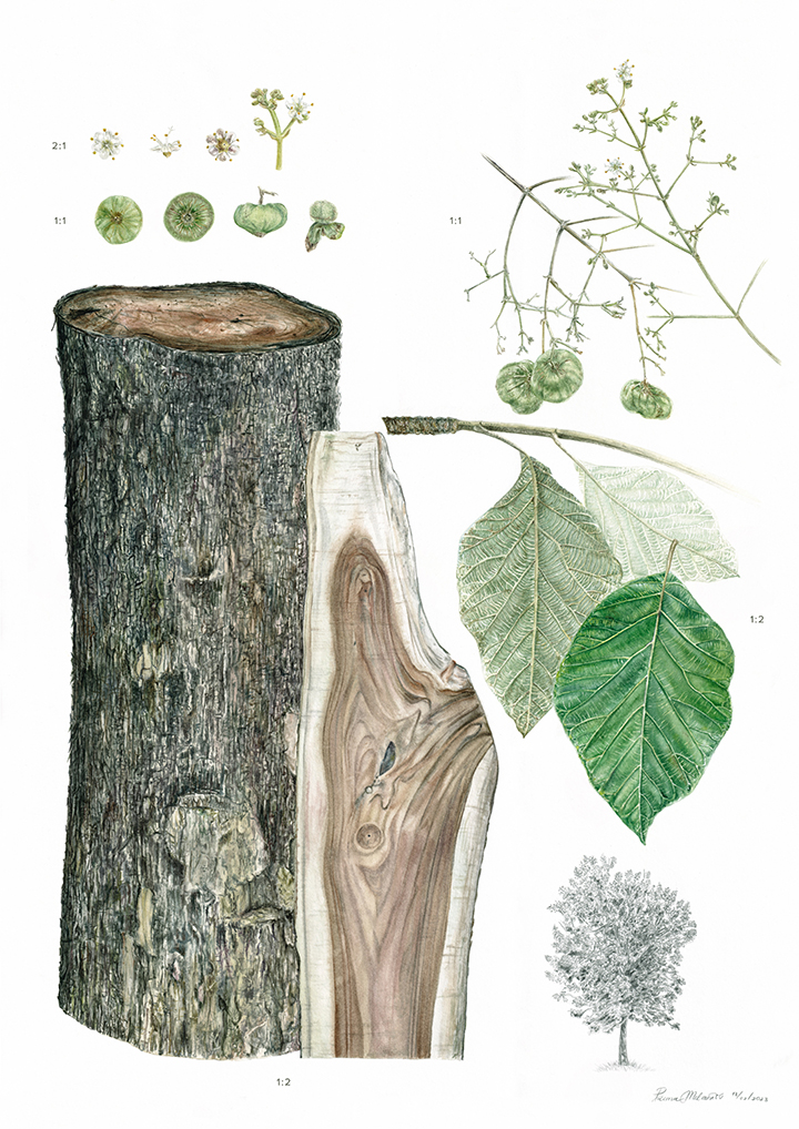 Teak plants have long been famous for their excellent wood quality and high economic value. Likewise, teak leaves are famous as food wrappers and dyes. However, it turns out that after taking a closer and more complete look at its clustered flowers, wide green leaves, dense and uniquely shaped fruit and very textured bark, my admiration increased even more. My impression of God’s destiny deepened because even though the specimens of teak flowers and fruit were located in high places, my path to getting them was made easier by Him. Painting a complete teak plant has its own challenges that I will always remember. This painting will always be one of the best works I have ever created.